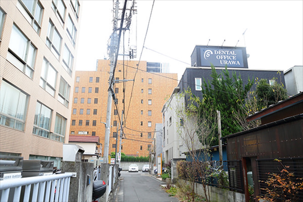 紺色の看板が見えますので、その家の一階がシンポ歯科クリニック浦和になります。